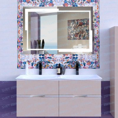 У нас можно купить прямоугольное зеркало в ванну в раме с фронтальной, фоновой, а также двойной подсветкой. При этом лампы будут излучать теплый, нейтральный белый или холодный света. При желании добавим в конструкцию разноцветную комбинацию.